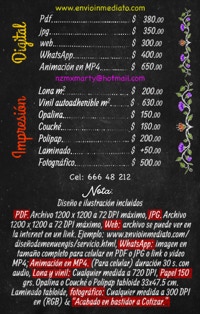 Nunca se verán desgastadas y siempre llamativas, las puedes compartir por WhatsApp o en una animación en video para YouTube o redes sociales, o simplemente anunciarlas en un cartel impreso además contamos con excelentes precios tanto en Digital o en Impresión.
